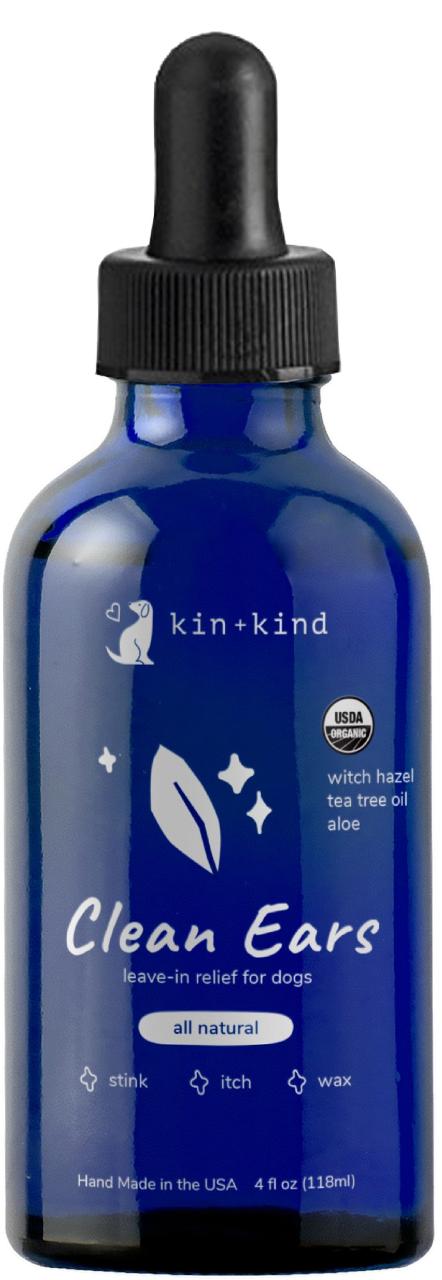 Does your dog have stinky ears, yeast, swelling or mites? Keep your pup's ears clean with the kin+kind Organic Clean Ears leave-in dog ear cleaner.