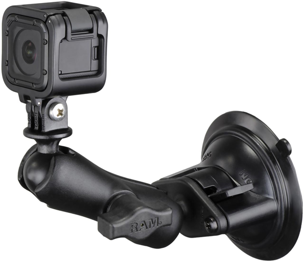 Ideal for vehicle windshields, paddle board decks and other nonporous surfaces, the RAM Twist-Lock Suction Cup mount securely holds an action camera so you can capture every moment of your adventure.