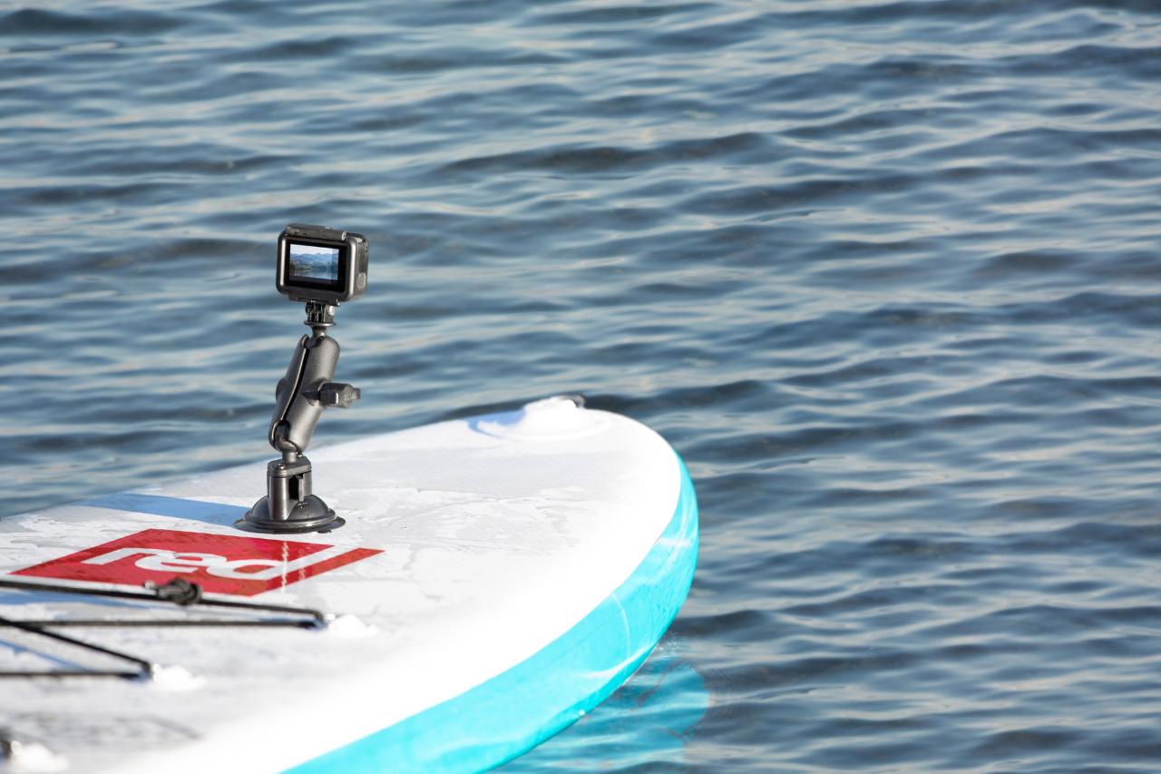 Ideal for vehicle windshields, paddle board decks and other nonporous surfaces, the RAM Twist-Lock Suction Cup mount securely holds an action camera so you can capture every moment of your adventure.