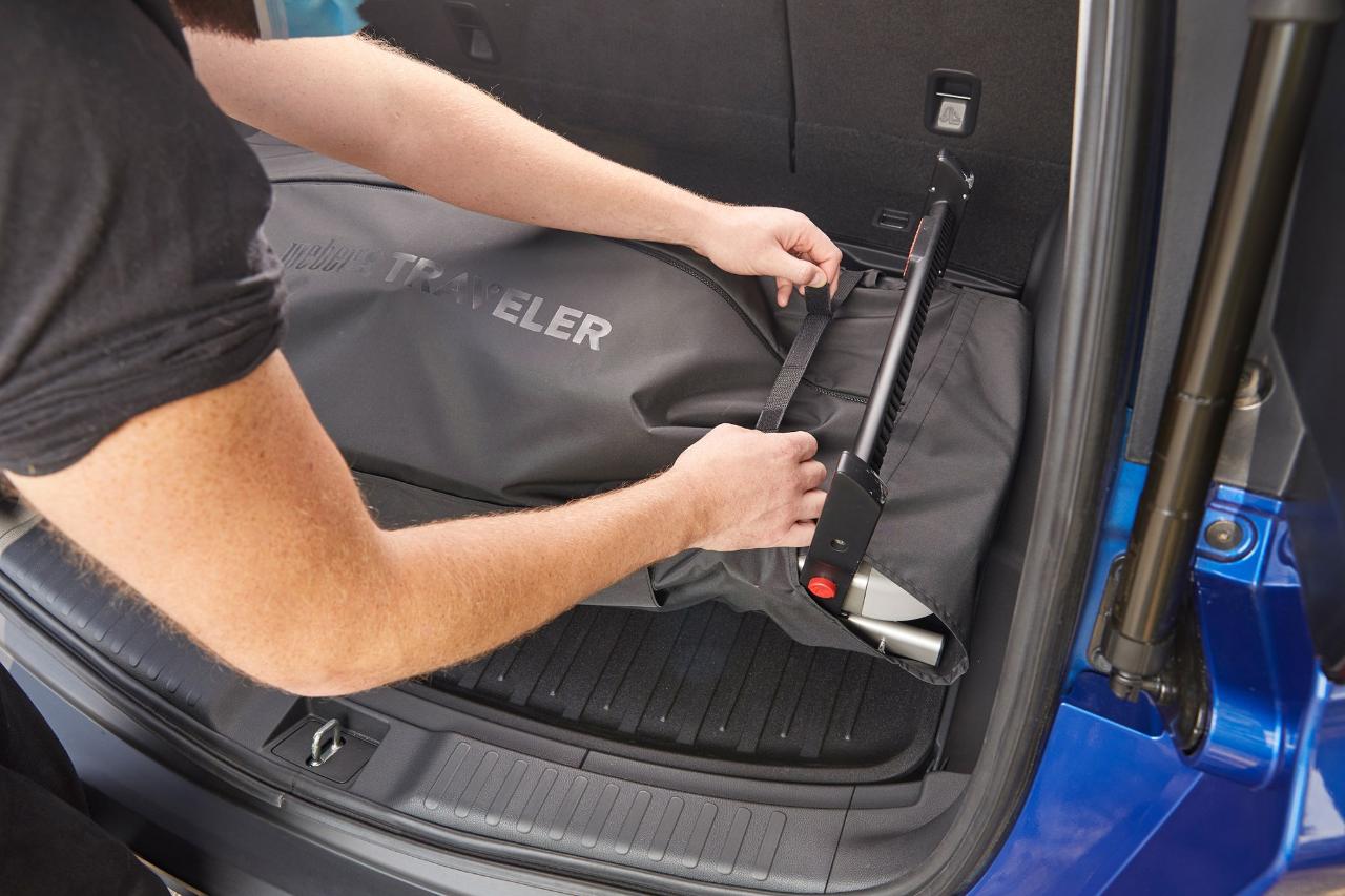 Protect your vehicle's interior when you're grilling on the go. The Weber Traveler Cargo Protector is a cover that fits snugly around your Traveler grill to contain grease and grime during transport.